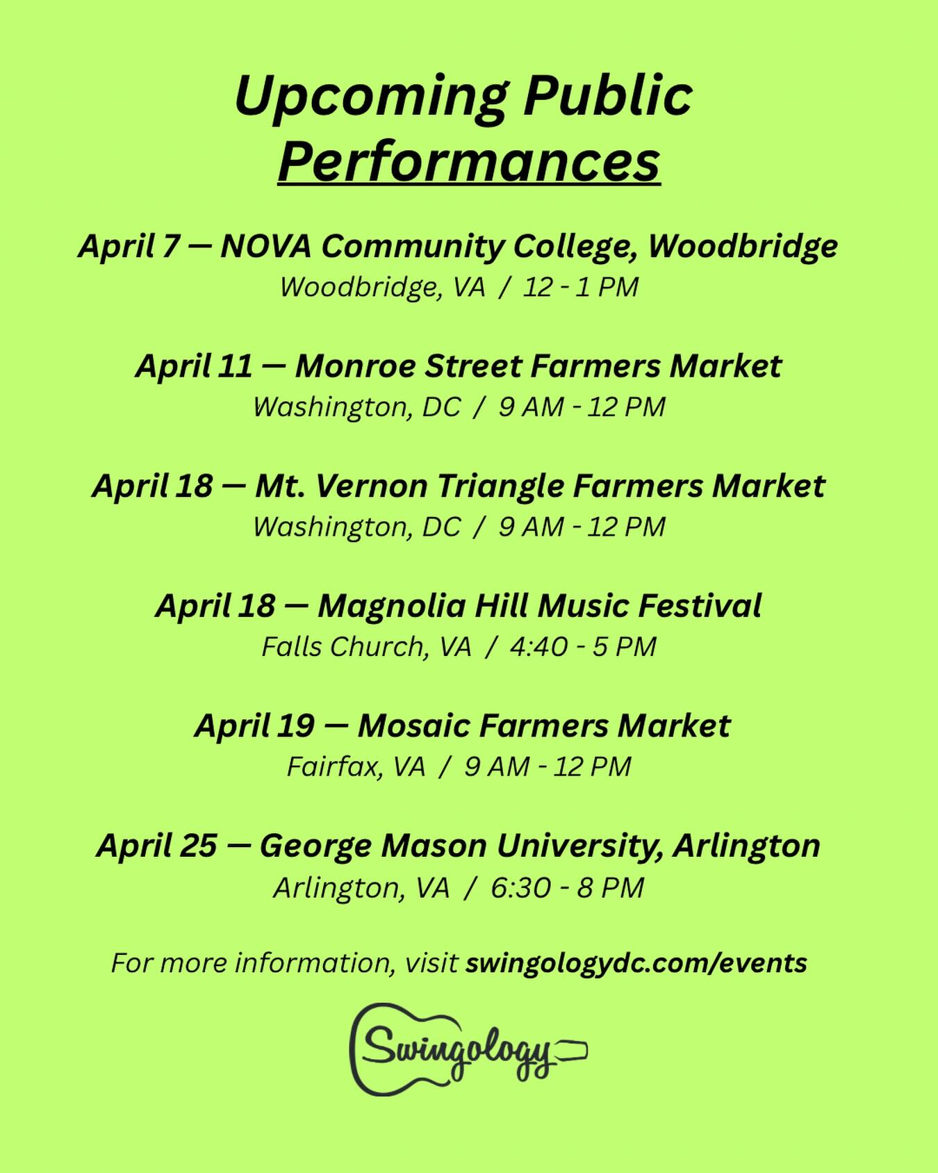 For bookings and more information, please fill out the form on this page or contact us directly at: book@swingologydc.com